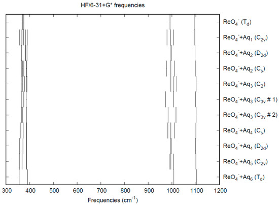 Vibrational frequencies (HF/6-31+G*) of hydrated perrhenate.
