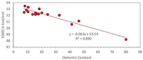 Correlation between the E(NR) values and the dielectric constant (or relative permittivity) of the liquid carboxylic acids.