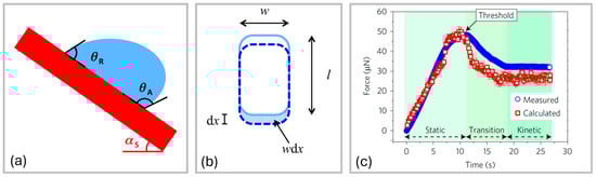 - Tadmor, R.; Bahadur, P.; Leh, A.; N’Guessan, H.E.; Jaini, R.; Dang, L. Measurement of Lateral Adhesion Forces at the Interface between a Liquid Drop and a Substrate. Phys. Rev. Lett. 2009, 103, 266101. [Google Scholar] [CrossRef]