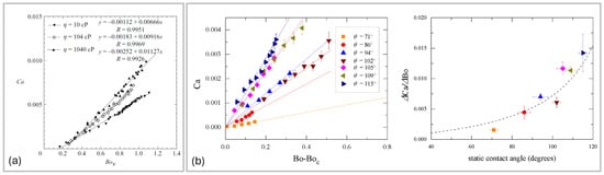 - Cox, R.G. The Dynamics of the Spreading of Liquids on a Solid Surface. Part 1. Viscous Flow. J. Fluid Mech. 1986, 168, 169–194. [Google Scholar] [CrossRef]