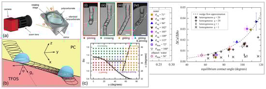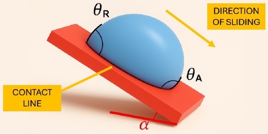 - Butt, H.J.; Berger, R.; De Coninck, J.; Tadmor, R. Drop Friction. Nat. Rev. Phys. 2025, 7, 425–438. [Google Scholar] [CrossRef]