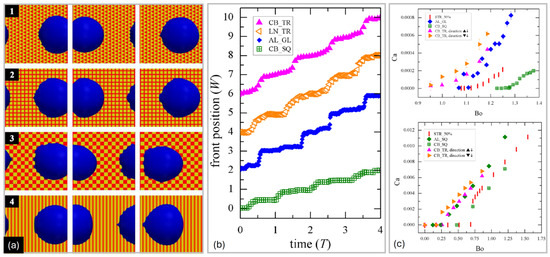 - Dong, B.; Wang, F.; Zhang, X.; Jiang, X. 3D Lattice Boltzmann Simulation of Droplet Evaporation on Patterned Surfaces: Study of Pinning–Depinning Mechanism. Int. J. Multiph. Flow 2020, 125, 103218. [Google Scholar] [CrossRef]