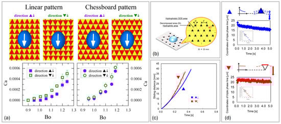 - Wang, X.P.; Qian, T.; Sheng, P. Moving Contact Line on Chemically Patterned Surfaces. J. Fluid Mech. 2008, 605, 59–78. [Google Scholar] [CrossRef]
