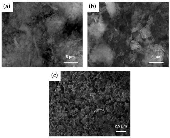 SEM images of the functionalized BNNSs with (a) (3-aminopropyl)dimethylmethoxysilane, (b) (3-aminopropyl)diethoxymethylsilane, and (c) (3-aminopropyl)trimethoxylsilane.