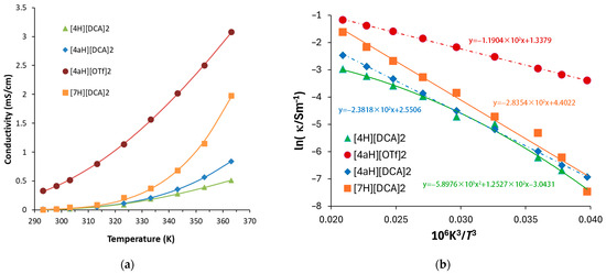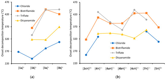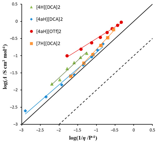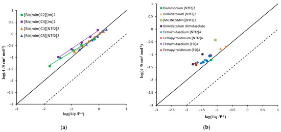 2. The salts were characterized by NMR, ES-MS, DSC, TGA, and miscibility or solubility studies. Additionally, the ILs were characterized by their viscosities. The conductivities of the diamidinium ILs were also measured, and this allowed for an investigation of their Walden parameters. In contrast to expectations, since the ion pairing and clustering were expected to be significant, this showed them to be “superionic”. Previous reports of Walden plots of dicationic ILs were found to be erroneous, and a reanalysis of the literature data found that all reported dicationic and even tetracationic ILs can be classified as superionic. The salts [C