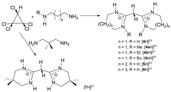 n = 3, 4, 5)) were isolated as their conjugate acids, the diamidinium dicationic salts [C