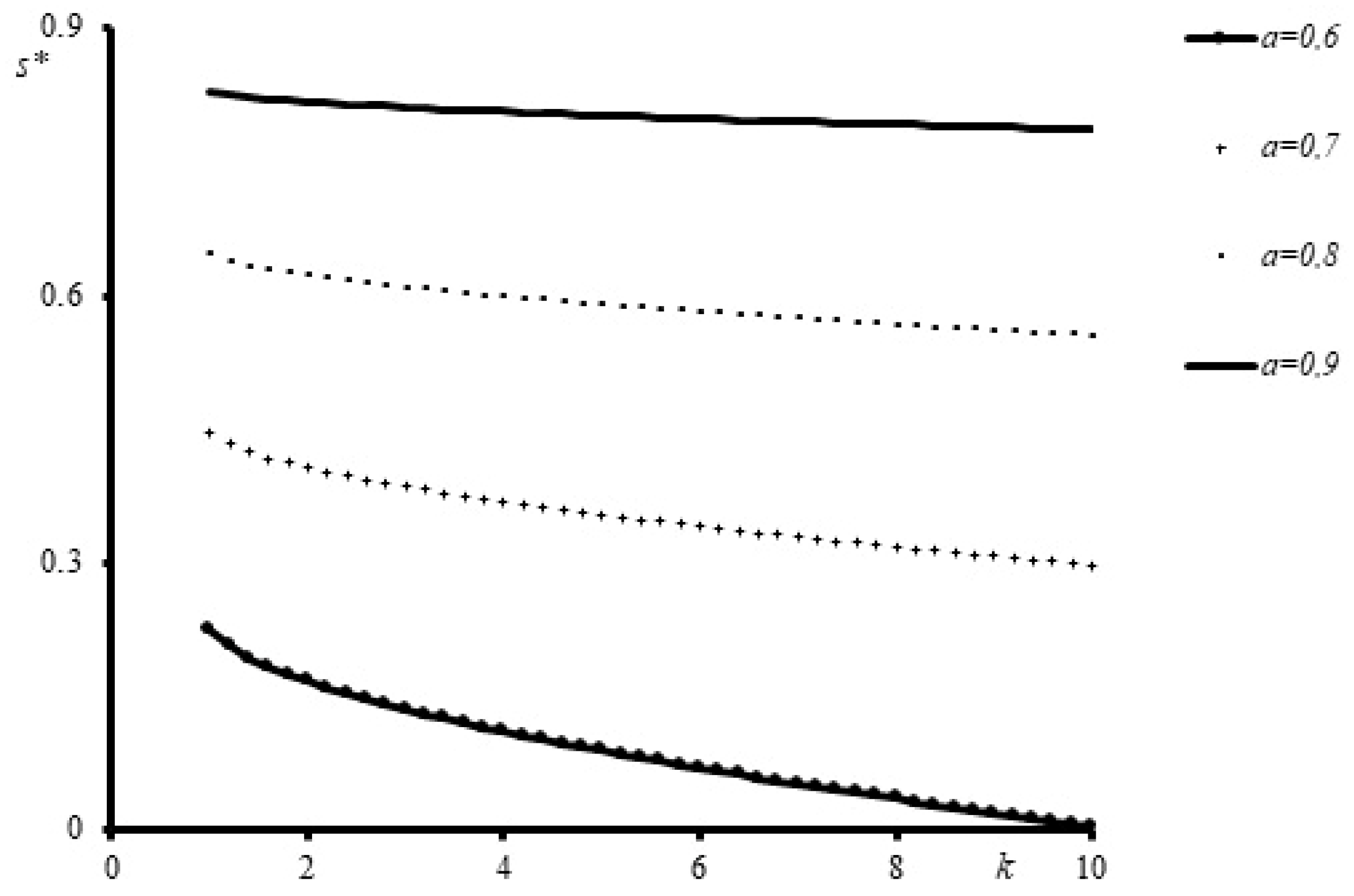 Here s is the current relative radius (normalised by pipe radius R); a is the undeformed core relative radius. The roots s′ and s″ denote secondary relative radii that delimit intervals where the structure is destroyed; s* denotes the maximum admissible relative radius at which the structure is still preserved (physically meaningful root with a ≤ s* ≤ 1).