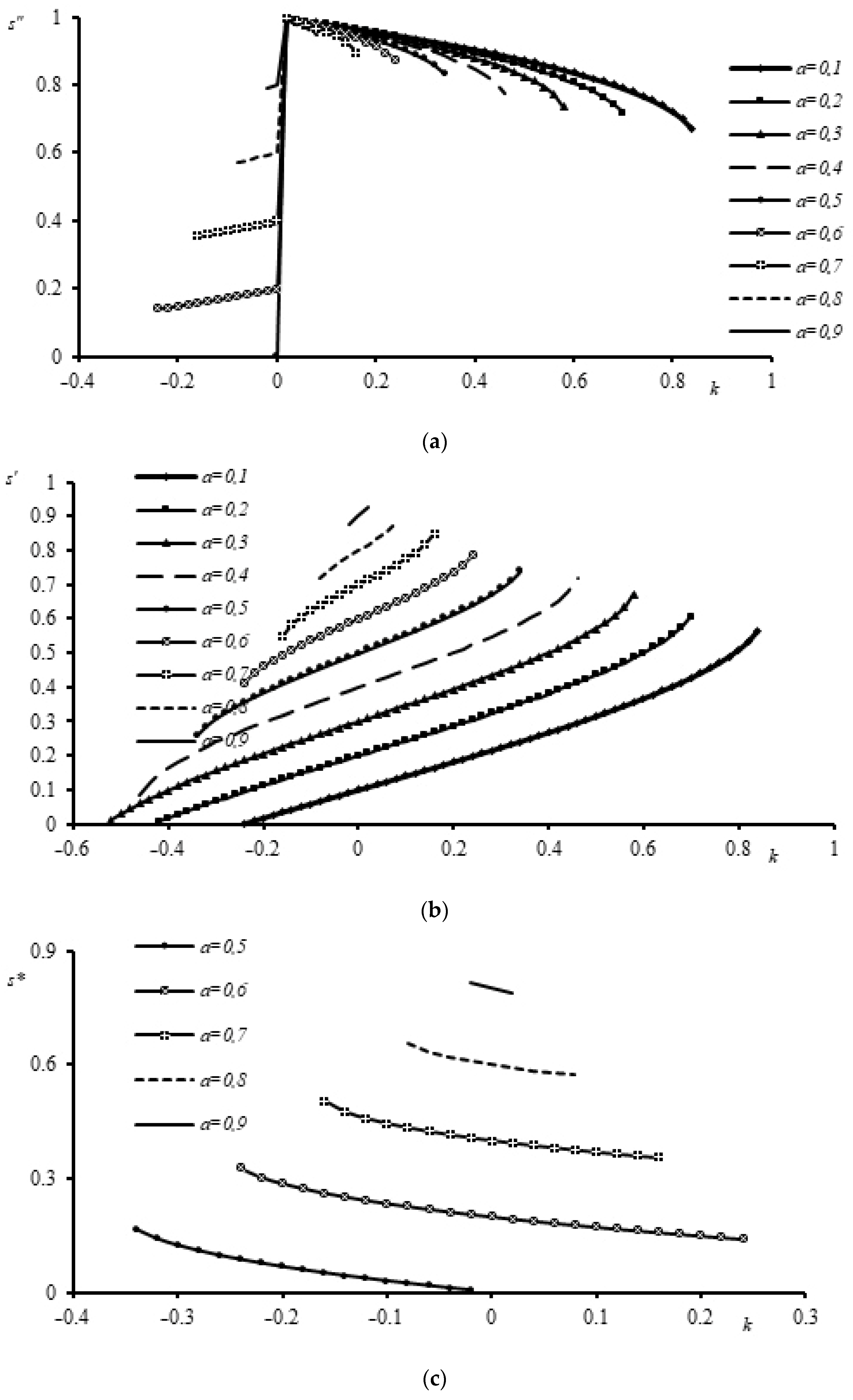 Figure 2) show that the values of the real root of Equation (11), determined by formula (12), may exceed the corresponding value of the relative radius of the undeformed flow core, which makes the values negative