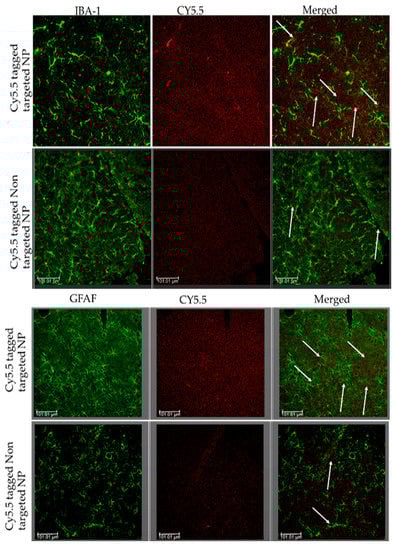 3.3. apoANPs and tf-apoANPs Crossed the BBB and Internalized in Parenchyma and Glial Cells