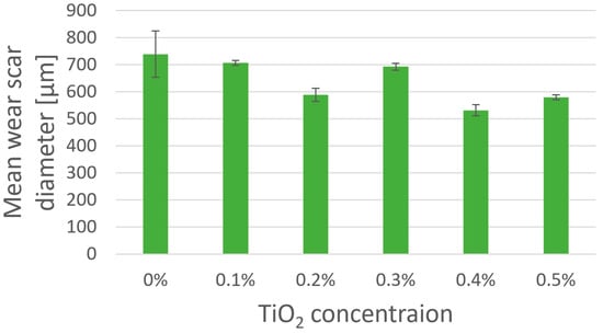 Comparison of the mean wear scar diameter values of lubricant samples with various titania nanoparticle concentrations.