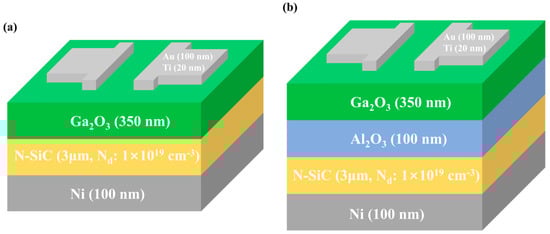Schematic of the (a) Ga2O3/SiC and (b) Ga2O3/Al2O3/SiC structures.