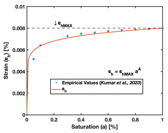 Hygro-expansion strain and saturation level relation for Whatman Grade 41 filter paper [24].
