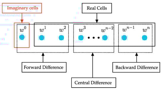 The boundary conditions for our specific case are defined for a bilayer cantilever by utilizing an imaginary grid point, as depicted in Figure 5.