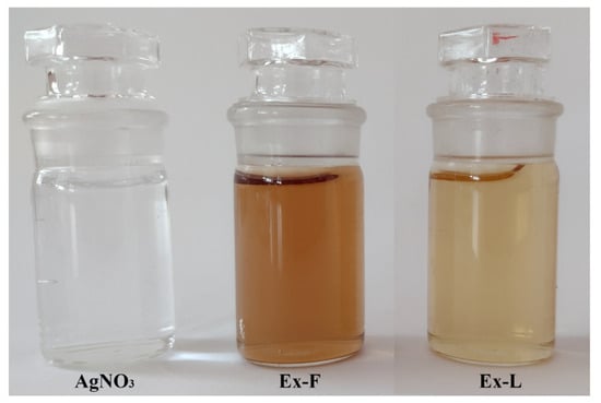 AgNO3 solution and extracts of dried lavender flowers (Ex-F) and leaves (Ex-L).