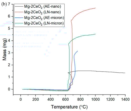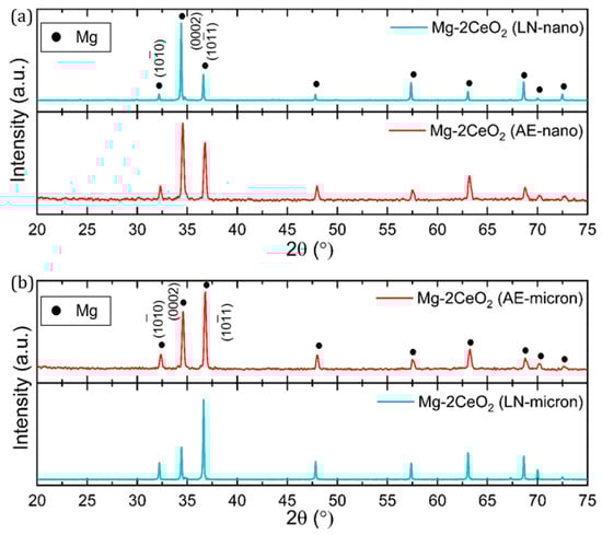 - Within the Mg-2CeO2 microcomposites, the weakened pyramidal texture in Mg-2CeO2 (AE) increases the ignition temperature. In this case, the basal peak was stronger (Figure 2).