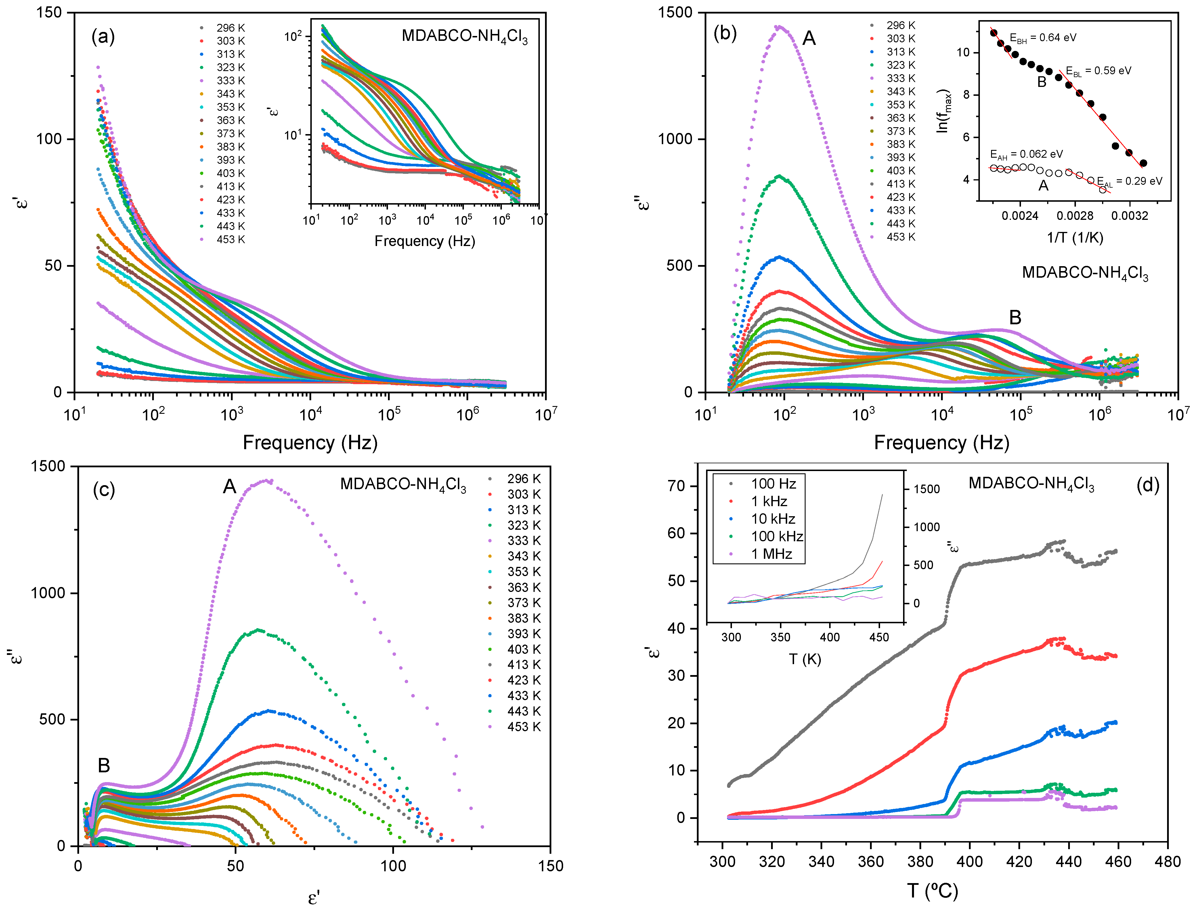 - Chu, L.-L.; Zhang, T.; Zhang, W.-Y.; Shi, P.-P.; Gao, J.-X.; Ye, Q.; Fu, D.-W. Three-Dimensional Metal-Free Molecular Perovskite with a Thermally Induced Switchable Dielectric Response. J. Phys. Chem. Lett. 2020, 11, 1668–1674. [Google Scholar] [CrossRef]