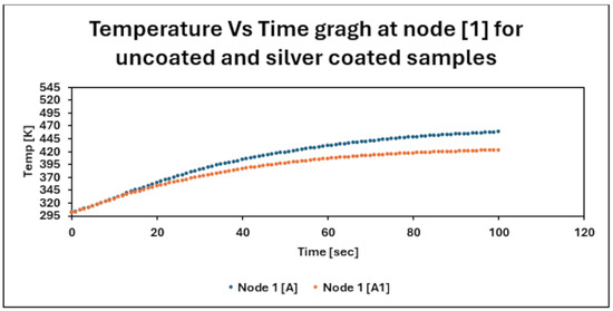 Comparison of temperature distribution of uncoated and silver-coated samples at node [1] [43].