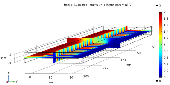 - Zoric, N.; Iavorschi, A.; Sireteanu, M.; Viziteu, G.; Ciobanu, R. Design and simulations of idc sensor using comsol multyphysics and dielectric spectroscopy of ltcc spectroscopy of ltcc materials materials materials. Bul. Agir 2013, 3, 63–69. [Google Scholar]
