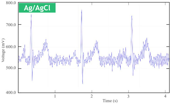 Both electrodes were tested on human subjects to evaluate their performance under physiological conditions, as depicted in Figure 12, Figure 13 and Figure 14.