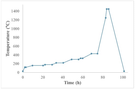 After printing, the green parts were subjected to a three-stage thermal post-process: preconditioning, debinding, and sintering. Preconditioning was performed at 110 °C for three to four days in a 20GC box oven (Quincy Labs Inc., Burr Ridge, IL, USA). Afterward, the parts were transferred to an MTI KSL-1500 X furnace (MTI Corp., Richmond, CA, USA) to complete the thermal post-processing.
