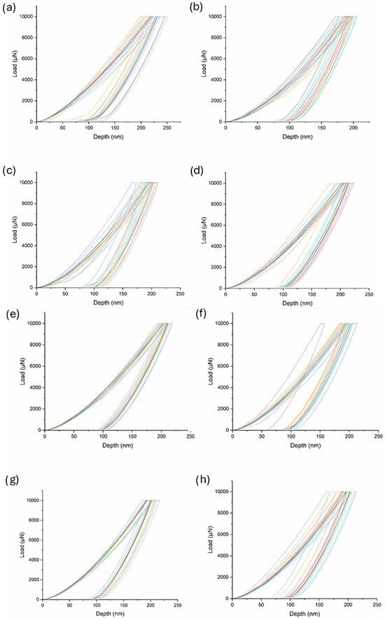 The nanoindentation data, presented in Figure 9 and Figure 10, highlight variations in indentation behavior across different points.
