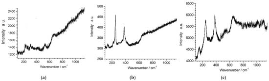 - Das, S.; Hendry, M.J. Application of Raman Spectroscopy to Identify Iron Minerals Commonly Found in Mine Wastes. Chem. Geol. 2011, 290, 101–108. [Google Scholar] [CrossRef]