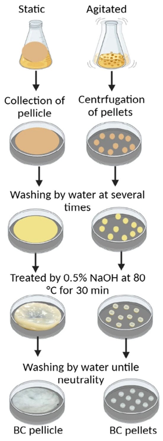 | Source/Production | Derived from plants like wood, cotton, and agricultural biomass | Synthesized by bacteria such as Komagataeibacter xylinus during fermentation |