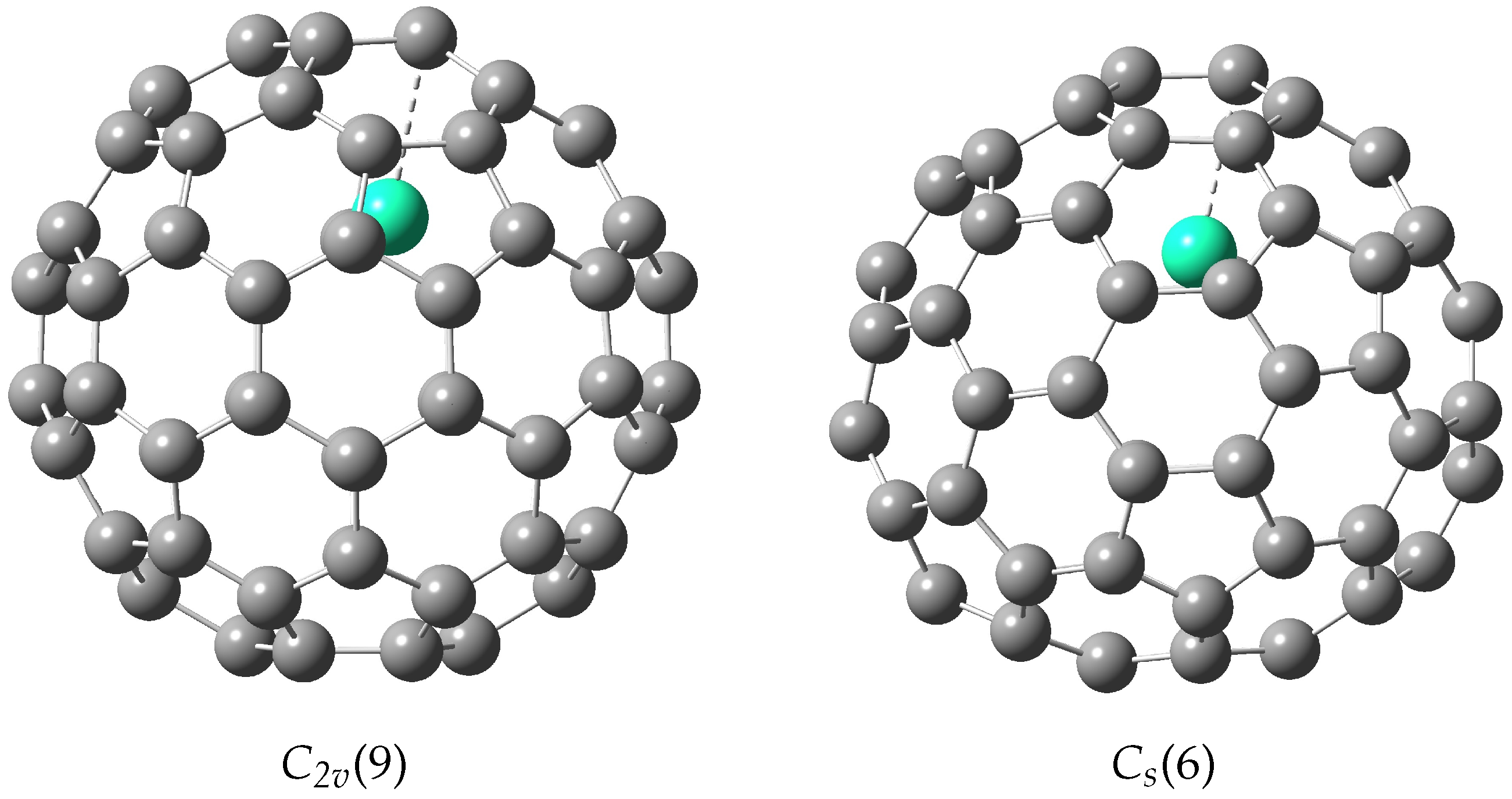 - Slanina, Z.; Uhlík, F.; Akasaka, T.; Lu, X.; Adamowicz, L. Theoretical studies of non-metal endohedral fullerenes. Nanomaterials 2025, 15, 1287. [Google Scholar] [CrossRef]