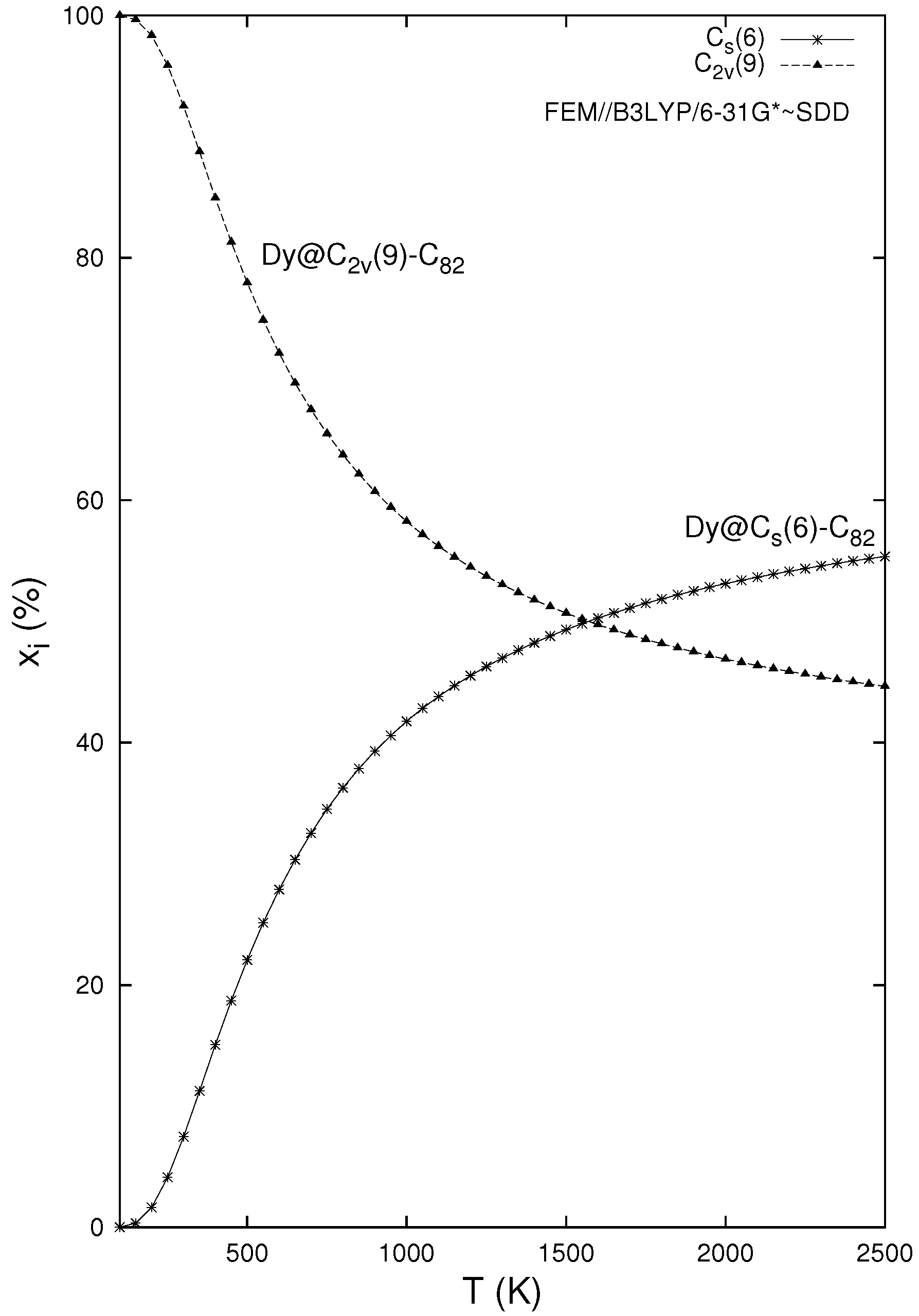 - Slanina, Z.; Uhlík, F.; Lee, S.-L.; Suzuki, M.; Lu, X.; Mizorogi, N.; Nagase, S.; Akasaka, T. Calculated temperature development of the relative stabilities of Yb@C82 isomers. Fuller. Nanotub. Car. Nanostruct. 2014, 22, 147–154. [Google Scholar] [CrossRef]