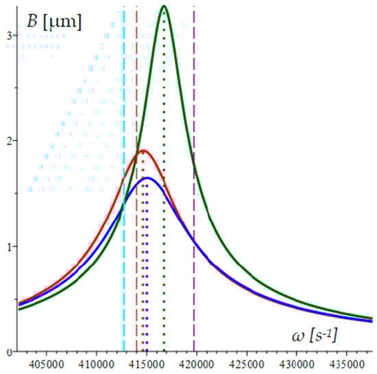The use of three microcantilevers allows the determination of three resonant frequencies and at least two cusp points [28]. In this microstructure, for mechanical AFR the values of the three resonant frequencies and AFR line intersections create a significantly greater variety in the possible configuration sets (see Figure 1). The amplitude B represents the displacement of the equivalent mass in a lumped dynamic model.