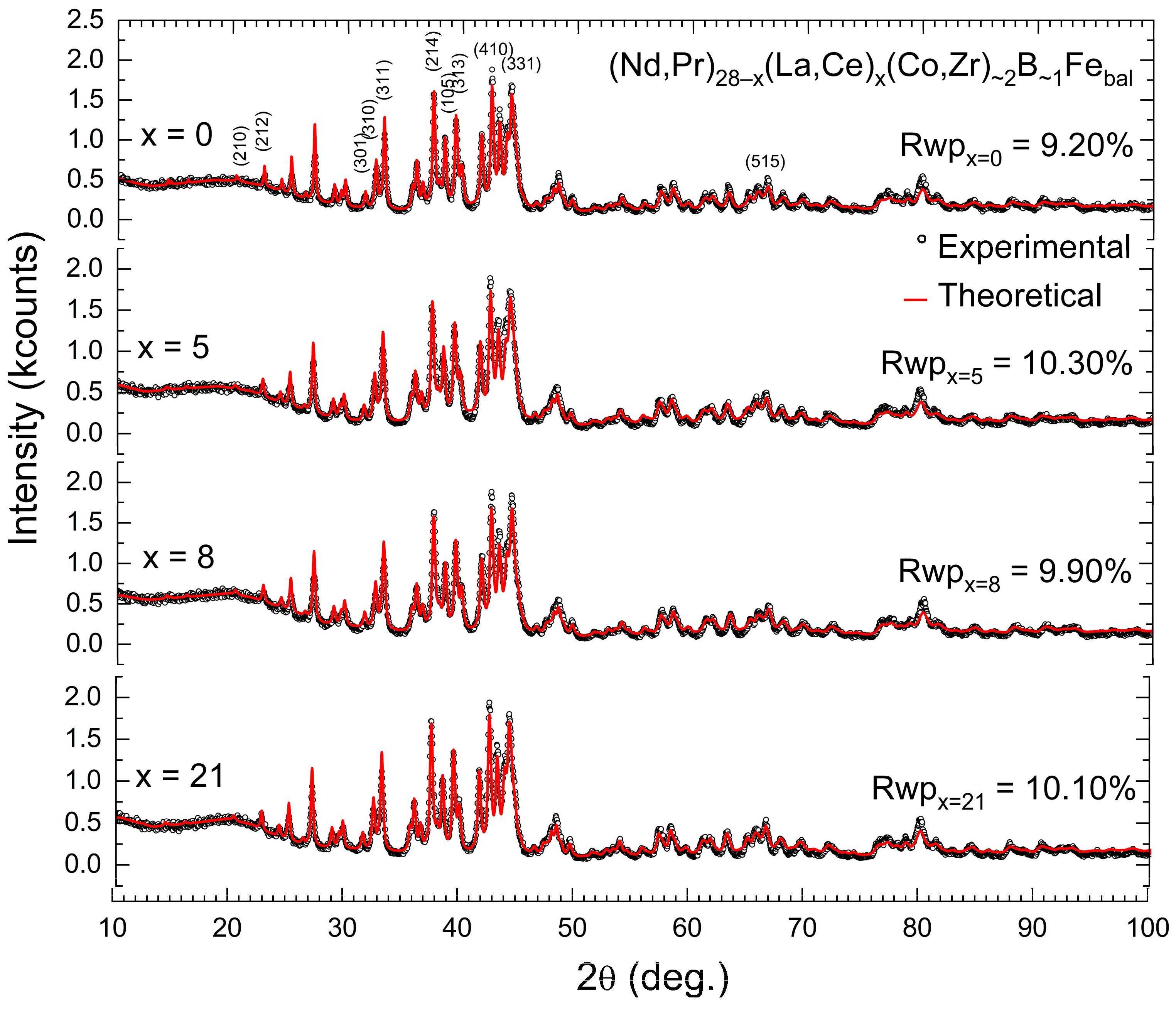 Figure 2 presents the powder X-ray diffraction patterns of the composition (Nd,Pr)