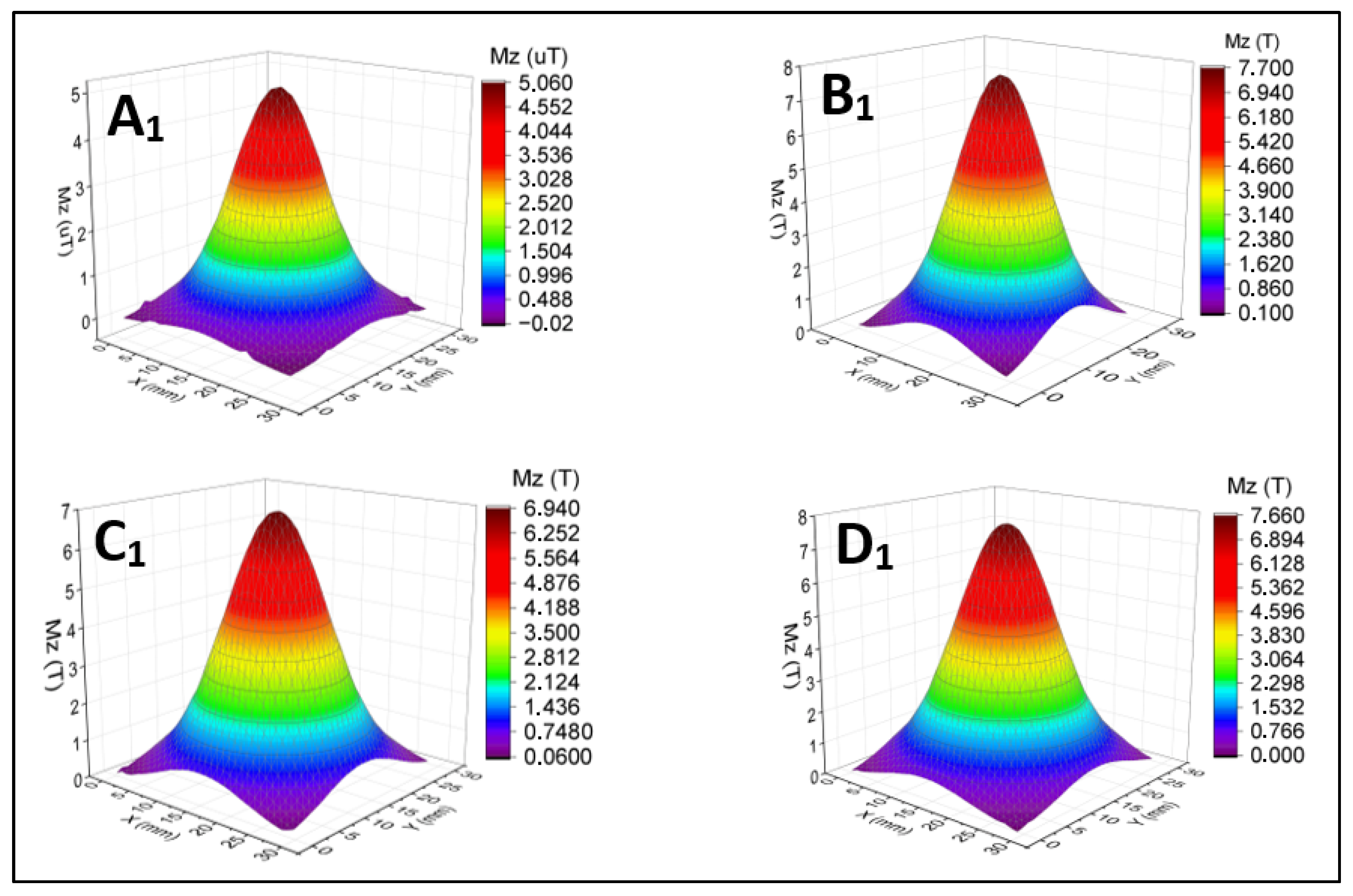 Figure 9 presents a three-dimensional magnetic field distribution map (M