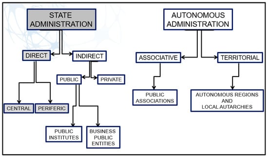 The State Administration is divided into direct (central and peripheric) and indirect (public and private). We can find public institutes and public business entities in the indirect administration.