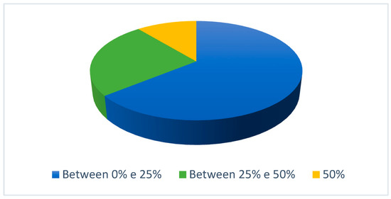 Regarding the team they lead, one hundred and sixteen (73%) of the participants affirmed that the percentage of employees telecommuting is equal to or less than 25%, nine (5.7%) that it are between 25% and 50%, and thirty-four (21.7%) that are above 50% (Figure 5).