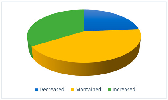 The chi-square test indicated that this influence is not significant (ꭓ2 (2) = 7.62; p = 0.094). However, it can be seen that both leaders who have between 0% and 25% of employees teleworking and those who have between 25% and 50% mainly reported that productivity was maintained. On the other hand, leaders who have more than 50% of their employees teleworking reported that productivity increased (Table 2).