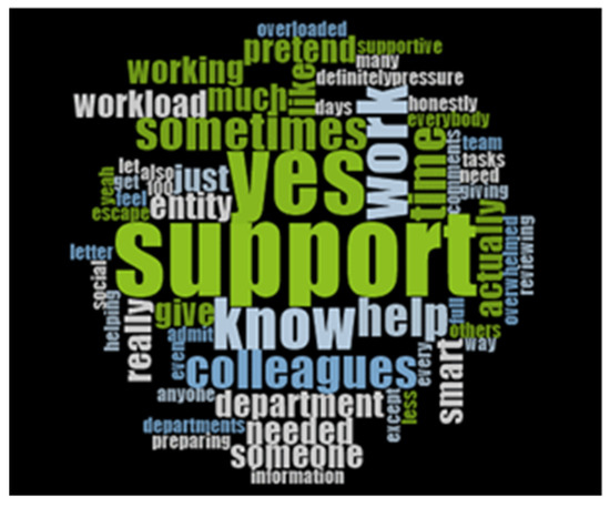 It was reported by our research participants, that the more an organization utilizes NPM approaches, the greater the demands on its employees. What varies among individuals is how they perceive the extra workload, the extent to which it leads to feelings of stress, and how it impacts on their perceived WLB. All participants in Cluster 2—who reported poor or unsatisfactory WLB—emphasized their intention or desire to engage in OCB wherever possible. This is illustrated by the OCB word cloud for the Cluster 2 participants (Figure 2). Each individual wants to do all that they can to help and support customers, colleagues, and the organization as a whole. However, in practice, some managers perceive that they simply do not have the time to engage in OCB. Overall, it seems that the more an organization utilizes traditional NPM approaches, the less likely that managers will be able to engage in OCB.