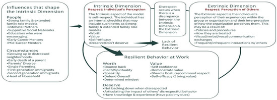 There were major areas of influence in each woman’s process in learning to be resilient when faced with a perceived lack of respect. In the participants’ reflections on the development of their own resilience, they identified extrinsic influencers and intrinsic motivators that helped them retain a sense of resilience and control. They also discussed resilience as the choice to survive or leave a disrespectful situation.