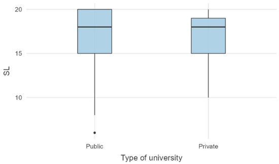 Similarly, no significant differences were found between academics who work in public and private institutions. Figure 5 clearly shows this comparison with the box plot.