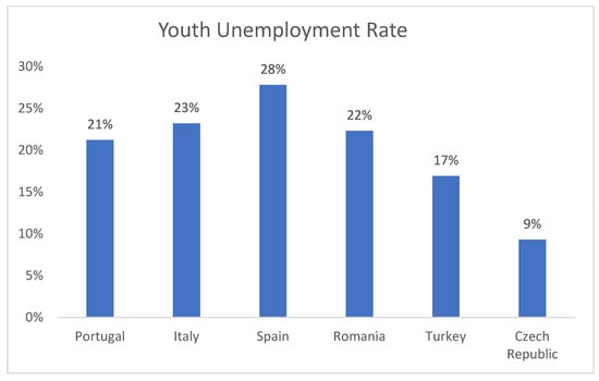 However, youth unemployment is still considered a widespread problem throughout Europe. The data for the countries participating in this study can be seen in Figure 1.