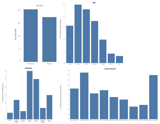 The data’s corresponding 42 features were cleaned and prepared in readiness for analysis, including changing all text-based responses into dummy variables (e.g., sex into male/female categories) and ordering variables (i.e., income brackets into income levels 1–6).