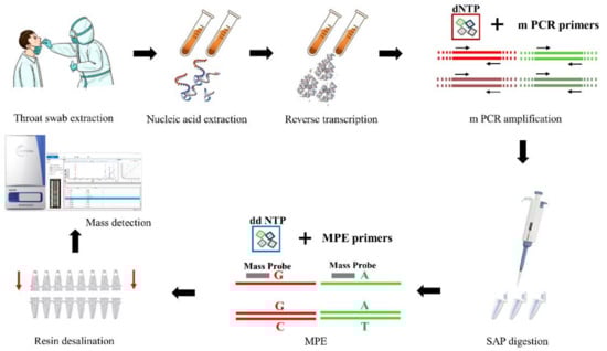 - Zhang, C.; Xiao, Y.; Du, J.; Ren, L.; Wang, J.; Peng, J.; Jin, Q. Application of Multiplex PCR Coupled with Matrix-Assisted Laser Desorption Ionization–Time of Flight Analysis for Simultaneous Detection of 21 Common Respiratory Viruses. J. Clin. Microbiol. 2015, 53, 2549–2554. [Google Scholar] [CrossRef] [PubMed]