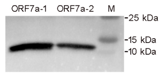 ORF7a-1 and ORF7a-2 by Western blot. M, protein molecular weight standards.