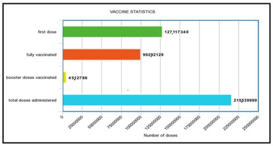 The Pakistan vaccination status graph provides the vaccination stats until 3 March 2022 (Figure 7). In a population of 220 million people, 992,921,29 people have received their whole vaccination schedule. The initial dose, on the other hand, is provided to 127,117,340 persons. Since the booster dose program has only recently begun, only 451,2786 shots have been provided. At the same time, the total number of dosages administered is 215,539,999.