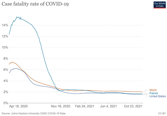 - Onder, G.; Rezza, G.; Brusaferro, S. Case-Fatality Rate and Characteristics of Patients Dying in Relation to COVID-19 in Italy. J. Am. Med. Assoc. 2020, 323, 1775–1776. [Google Scholar] [CrossRef]