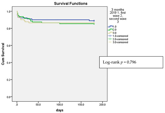 Comparison of Kaplan–Meier 6-month survival curves in STEMI patients in March–May 2019, March–May 2020 (first wave of the COVID-19 pandemic), and October–December 2020 (second wave of the COVID-19 pandemic).