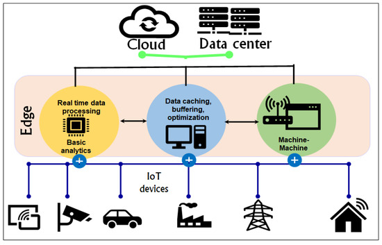 Many cloud-based applications use data centers as central servers to process huge data produced by edge devices, such as tablets, wearables, smartphones, and industrial units. This cloud-centric model increases both the computational and communication overheads, leading to an adverse effect on Quality-of-Service (QoS) and Quality of Experience (QoE). To resolve these issues, a concept of edge computing (EC) is proposed that dedicates/moves some of the computational burdens towards the edge of the network to take benefits from computational capabilities that are currently untapped in edge nodes, such as routers, base stations, and switches [177]. Figure 13 shows the schematic of EC.