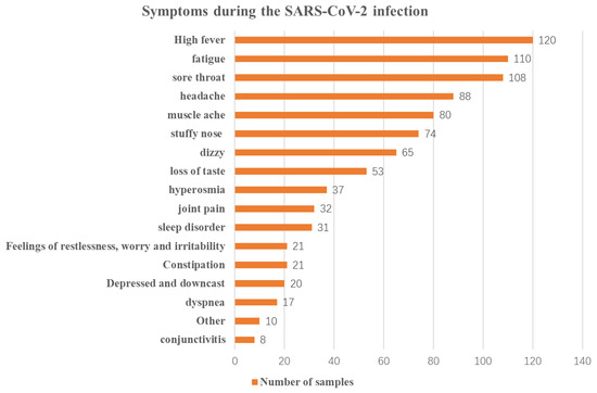 During the pandemic, the large number of patients infected with SARS-CoV-2 resulted in an extreme shortage of antigen detection kits and a substantial increase in their price. As a result, 30% of patients had symptoms suggestive of COVID-19 but had not been formally tested for antigens or antibodies to confirm the diagnosis. High fever, malaise, and sore throat were reported as the three most common COVID-19 symptoms, as expected, which were generally self-perceived as mild to moderate and only one-fifth perceiving their symptoms as severe. Despite most patients experiencing their disease as asymptomatic or mild, there is increasing evidence that many patients who either recovered from or had mild symptoms after COVID-19 exhibit diffuse, multiorgan symptoms months after the infection, known as the adult multisystem inflammatory syndrome, or “long COVID” [32]. The clinical picture of long COVID is diverse and includes symptoms such as malaise, myalgia, chest tightness, brain fog, and other neuropsychiatric symptoms similar to those of patients with mast cell activation syndrome [33]. During the COVID-19 pandemic, nearly 60% of patients infected with SARS-CoV-2 were treated with neocoronaviral therapy for various reasons such as home isolation, ill-health, and scarce medication. Among the 95 patients who took treatments for SARS-CoV-2 infection, 84 patients took symptomatic Western medicines (e.g., antipyretics, cough suppressants, and expectorants) and 37 patients used proprietary Chinese medicines (e.g., Lianhua Qingdian capsules, Panlangen granules, Niu Huang Shangqing pills, etc.) to alleviate their symptoms. Ten patients went to outpatient clinics, and eight patients were treated with traditional Chinese medicines (e.g., Chinese herbs, acupuncture, gua sha, and cupping). Although there were many different treatment options, most patients chose to buy over-the-counter medications and very few patients sought medical help.