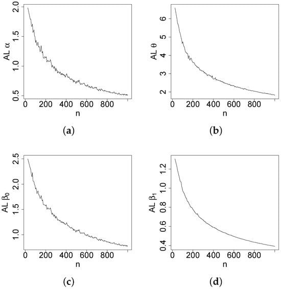Figure 7 report how the measure values change with respect to the sample size. The biases, MSEs, and ALs decay toward zero when