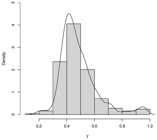 Figure 8. The average rate of vaccination in counties was 0.483 in the period of the study. The standard deviation is 0.132, which can be explained by the range of 0.189 and 0.950, respectively, the minimum and the maximum. Furthermore, the skewness and kurtosis are positive.
