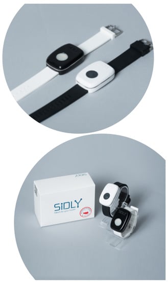 SiDLYCare PRO, depicted in Figure 1 is a bracelet which is able to monitor vital parameters and to connect patients with people they are familiar with or with caregivers. It is equipped with an internal micro SIM able to connect to mobile phones and data networks. The bracelet has a visible SOS button on the top that can send a customized message through a phone call, via SMS and via the web interface. The main characteristics of the bracelet (depicted in Figure 2) are listed in Table 1. The functions of the SiDLYCare PRO bracelet include the following: